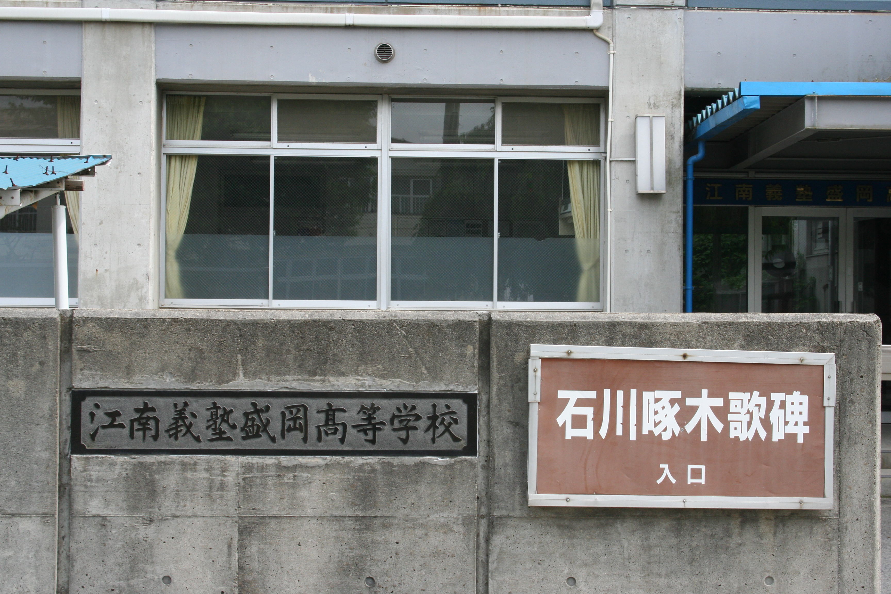 啄木の歌碑は校門から入るとすぐ左手にあり、啄木の2年上級で少年時代より晩年まで親交が厚く、堅い友情で結ばれていた金