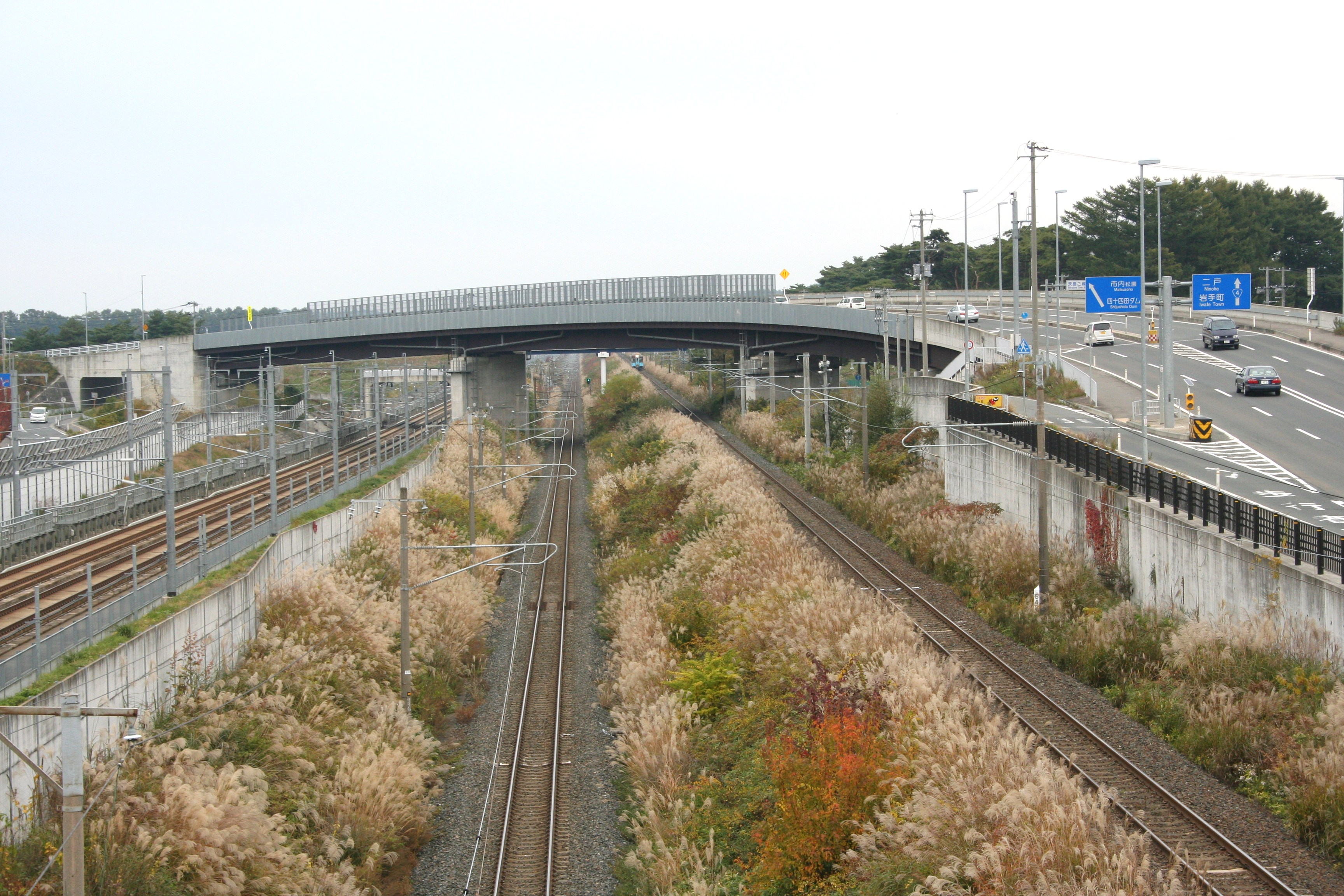 茨島跨線橋は啄木歌碑から国道4号線を北上して行くと1.5km程のところにあり、国道4号、国道281号、国道282号の跨線橋で、東北新幹線とIGRいわて銀河鉄道を跨いでいる。