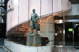 盛岡駅から大通りを進むと岩手公園がありますが、その手前に丸藤菓子店があり、ここには昭和52年9月に岩手大学の本田先生が彫刻した啄木像があります。啄木の歌はその台座に詠まれています。ここは啄木が通った盛岡中学、中学受験に備えて通った学術講習会の近くなので、この辺にはよく来たのでしょうね。